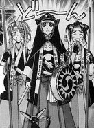 Kanako, with Naru Narusegawa and Mutsumi Otohime in tow, formed a counter-attack; believing that Mitsune was the Promise Girl that Keitaro had suffered so much to meet again. Attempting to destroy the entire establishment, Kanako's plan was thwarted by the timely arrival/crash of Seta's Van; driven by Keitaro.