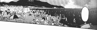 The Hinoshima beach is based on the Enoshima Katase beach in Fujisawa.
