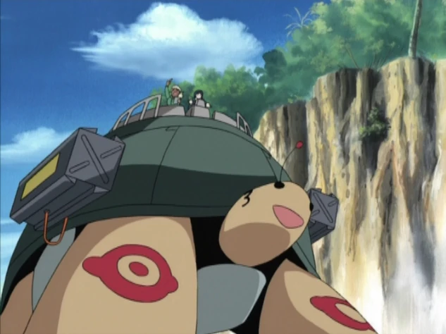 Designed after the larger, adult form of the Hot Springs Turtle, this mecha is an armoured transportation unit; possessing reinforced armour, two machine guns, a gatling gun, two missile launchers, eight missiles. It can reach a top speed of 280 kmph and convert to a marine mode raft.