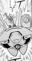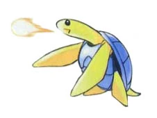 The first Mecha-Tama shown (Ch 41), Mecha-Tama 01 is designed after a flying Hot Springs Turtle. Capable of flight the robot is powered by an umbilical cord and controlled by a hand-held remote. It possesses Vertical Take-Off jets and can perform a spinning attack. It also possesses the ability to fire plasma balls and an ice beam cannon.