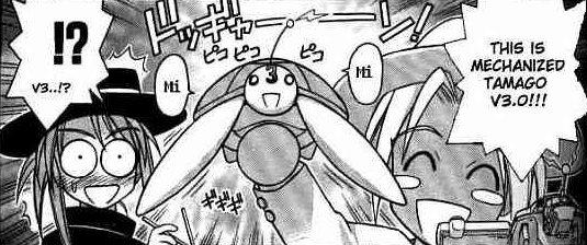 Mecha-Tama 03 is used by Naru and Kaolla to spy on Keitaro and Mutsumi's date (Ch 56). It seems to be primarily a spy and infiltration unit.