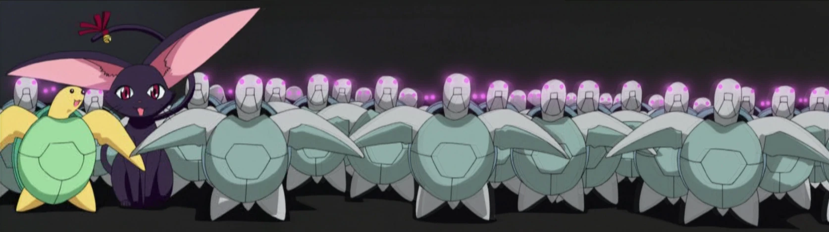 An upgraded variation of Mecha-Tama 01, Mecha-Tama 02 is slightly larger and possesses a cannon gun on its shell. Appearing in Episode 10, Mecha-Tama 02 is still capable of flight, the mecha also still possesses an umbilical cord and is controlled by the same hand-held remote that controlled Mecha-Tama 01.