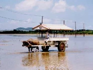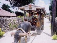 The water buffalo carts are a famous tourist attraction in Taketomi, offering 40 minute rides through the village. Water buffalo carts also provide shuttle service between Iriomote Island, Yaeyama Island and Yubu Island as the water between the islands draws back enough at low tide to allow access.