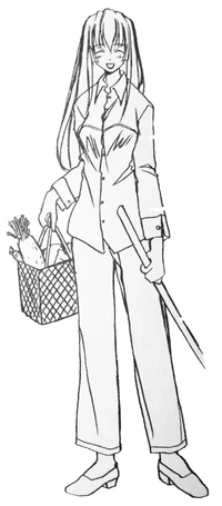 Her appearance and clothing resemble that of traditional Japan, often only seen wearing her hakama during Shinmei-ryu affairs, though she does sometimes wear more modern clothing. Her hair, too, is usually just worn straight in a traditional Japanese cut.